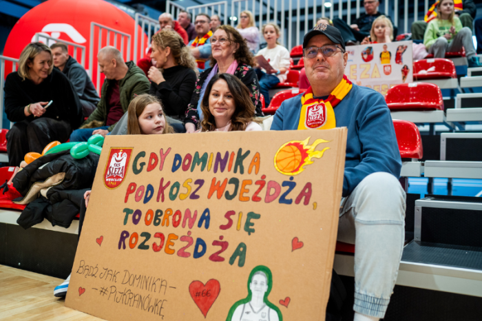 BASE Cheerleaders wraz z 1080 kibicami na trybunach dopingowali Ślęzę przez całe spotkanie. Wśród kibiców znalazła się również legenda koszykarskiego Śląska – Maciej Zieliński – stały bywalec na meczach Ślęzy. To był ostatni mecz fazy zasadniczej, po którym czekają nas trzy tygodnie przerwy na mecze reprezentacyjne. A później nadejdzie czas prawdy – faza play‑off, czyli walka o medale.