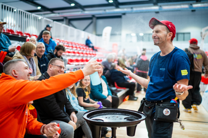 Nie zabrakło też sportowych emocji – podczas przerwy odbył się konkurs rzutów wolnych, w którym zawodnicy mieli 30 sekund na oddanie jak największej liczby celnych rzutów. Uczestnicy walczyli do ostatniej sekundy, a trybuny dopingowały ich z niesamowitą energią.